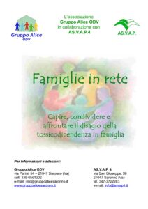 Il gruppo “Famiglie in rete” è condotto da psicologi esperti e da volontari del Gruppo Alice che insieme lavorano nell’ambito di intervento descritto. L’attività del gruppo si articola in tre livelli. Il primo, spesso definito “psico-educativo”, è volto a rendere i familiari più consapevoli delle principali problematiche legate alla presenza quotidiana di un paziente tossicodipendente, e si basa su metodologie di tipo cognitivo-comportamentale. Il secondo livello, di matrice “sistemico-relazionale”, ha lo scopo di favorire dinamiche familiari più funzionali, atte anche a facilitare il lavoro dei servizi territoriali. Infine il terzo livello, detto “supportivo”, si propone di offrire un sostegno emotivo alle famiglie in difficoltà, puntando più sul mutuo aiuto che sull’intervento diretto da parte degli psicologi conduttori.